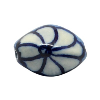 Atacado 15mm Custom Designs Pintado À Mão Oval Azul e Branco Big Flower Design Porcelana Beads para Fazer Jóias